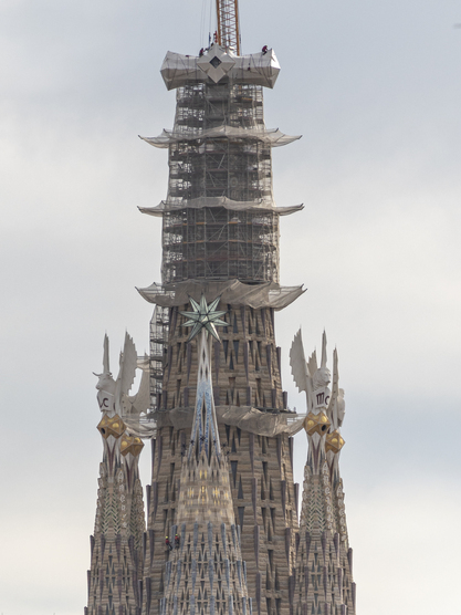 Continuen avançant els treballs d’instal·lació de les peces de la creu que culminarà la torre de Jesucrist de la Sagrada Família. Després de la col·locació del braç inferior, del nucli central i dels dos primers braços horitzontals entre octubre i novembre de 2025, avui s’ha instal·lat el tercer dels quatre braços horitzontals de creu.