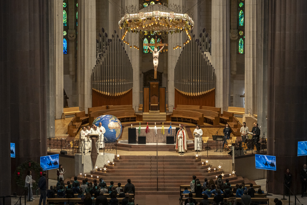 Alumnes de 4t de primària van viure una jornada especial d’Advent al temple de la Sagrada Família, gràcies a la invitació del Secretariat Diocesà de Missions, les Obres Missionals Pontifícies i la Fundació Escola Cristiana de Catalunya. L’acte, presidit per Mons. David Abadías, bisbe auxiliar de Barcelona, va tenir lloc el dilluns 15 a les 10 h.