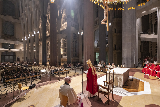 The Sagrada Família hosted the investiture ceremony of the Equestrian Order of the Holy Sepulchre of Jerusalem on Saturday. The Eucharistic celebration was presided over by H.Em. and Most Rev. Cardinal Fernando Filoni, concelebrated by H.Em. and Most Rev. Cardinal Lluís Martínez Sistach and by The Most Reverend Giacinto-Boulos Marcuzzo.