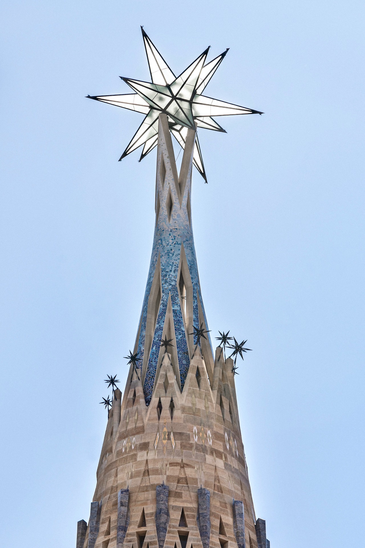 - The windows on the Nativity façade have bluer tones, corresponding to the morning light