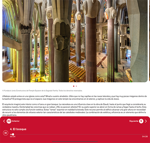 ¡Bájate la audioguía en tu dispositivo y no te pierdas ni un detalle! Disponible e en 19 idiomas: catalán (CA), castellano (ES), Euskera (EU), Gallego (GL), inglés (EN), francés (FR), alemán (DE), italiano (IT), chino (ZH), japonés (JA), portugués (PT), ruso (RU), húngaro (HU), coreano (KO), sueco (SV), finés (FI), polaco (PL), neerlandés (NL), ucraniano (UK) y rumano (RO). También está disponible la signoguía en lengua de signos española (LSE), lengua de signos catalana (LSC) y sistema de signos internacional (SSI), así como la audioguía descriptiva en 3 idiomas: catalán, castellano e inglés.