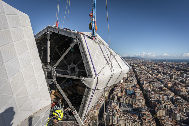 La instalación de las piezas que forman parte de la cruz de la torre de Jesucristo de la Sagrada Familia sigue avanzando según el calendario previsto. Después de colocar el brazo inferior el pasado 30 de octubre y, posteriormente, el núcleo central que unirá todos los brazos, hoy se ha instalado el primer brazo horizontal, el orientado a la fachada del Nacimiento. Próximamente se instalará el segundo brazo, orientado a la fachada de la Pasión.