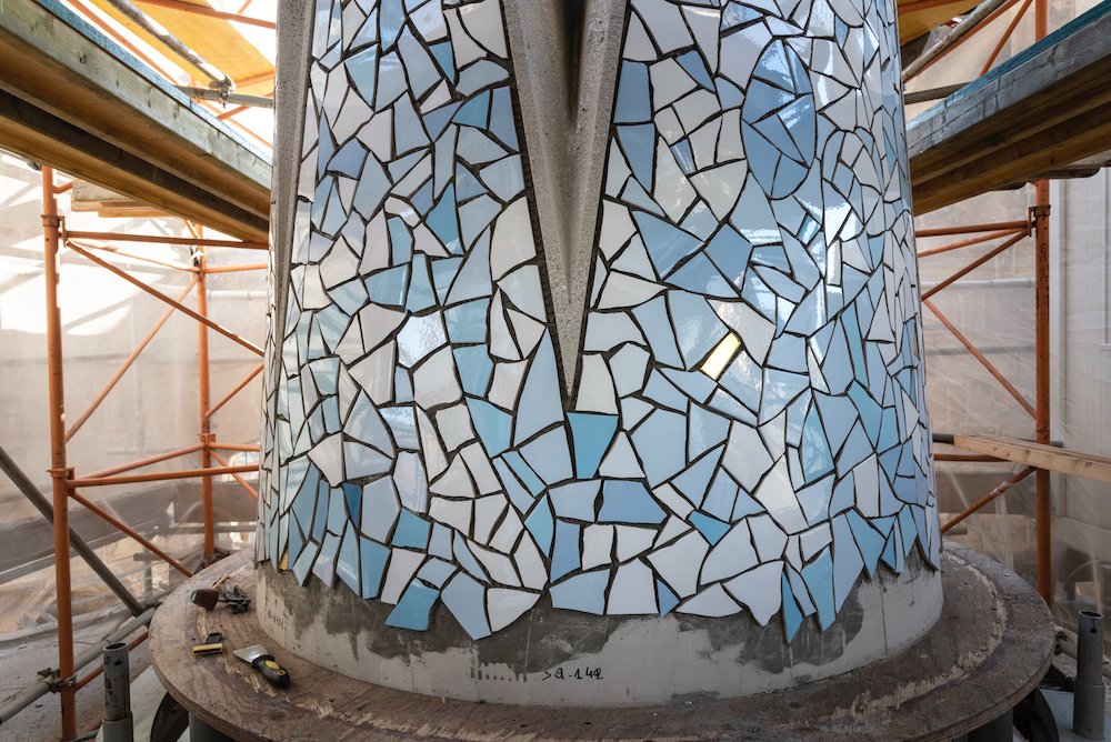 Durante el 2021 todos los esfuerzos se centran en acabar la torre de la Virgen María, la segunda más alta del conjunto de la Basílica con 138 metros de altura.
