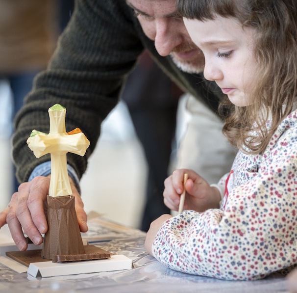 Con el objetivo de acercar a los niños y niñas el sentido de la Semana Santa, la Sagrada Familia propone un taller pensado para familias con niños y niñas de entre 6 y 12 años. El taller consistirá en una visita dinamizada con especial énfasis en la fachada de la Pasión y también en la decoración de una figura de chocolate inspirada en el terminal de la cruz de la torre de Jesús, una colaboración con Lluc Crusellas de la chocolatería Eukarya.